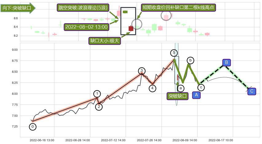 ➢ 2022-08-02 13:00形成:向下跳空【突破】缺口