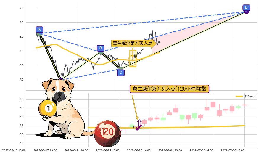 ➣ D点拟合预测价格9.38,距离最后交易收盘价格8.28相差 +13.24%