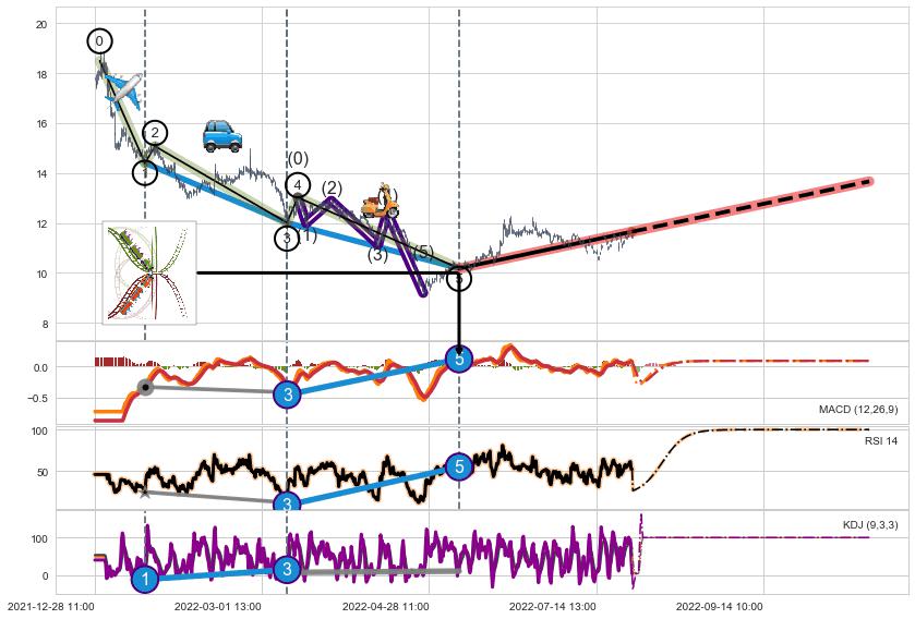 | 5 🅚:【高山滑雪】买入点 ➕ 🌊:波浪理论猜想下跌浪5已形成,猜想后续形成abc反弹上涨(均值回复) ☞ 看多信号 ⇥ 【均线】交织【图形】⇥ 综合量化分数: 63 | > |