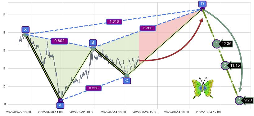 ➣ 未完成【蝴蝶】形态起点X: 03-24:10, 已到达C点: 07-15:14, 预测最终D点: 09-22:10, 共558交易小时