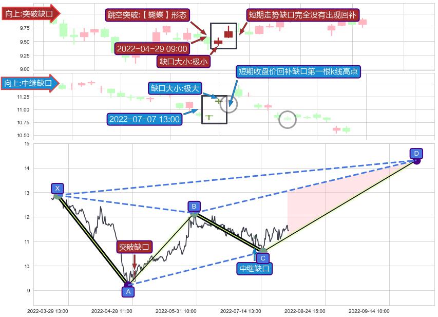 ➢ 跳空突破【蝴蝶】形态关键点后,后续非关键走势也无缺口回补迹象,突破缺口可信度提高