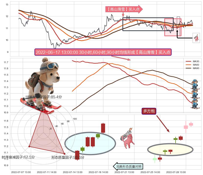 | 11 🅚:【高山滑雪】买入点 ➕ 📡:谐波蝴蝶猜想c点下沉接近b点后强支撑来临拉升上涨(均值回复) ☞ 看多信号 ⇥ 【均线】交织【图形】⇥ 综合量化分数: 63 | > |