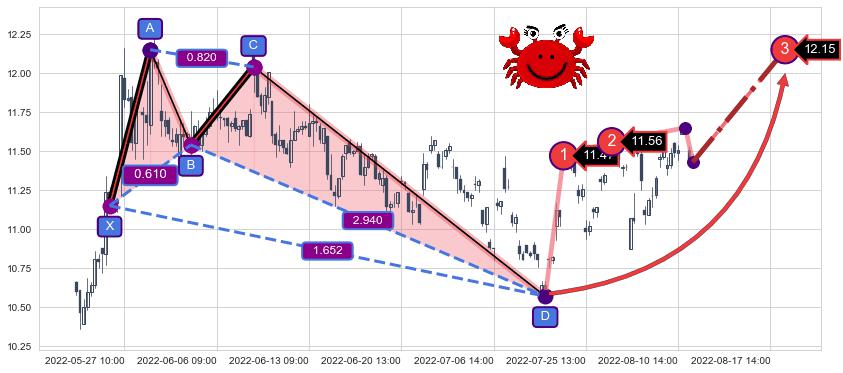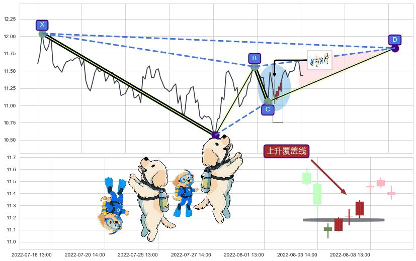 ➣ 已完成【螃蟹】形态起点X: 05-26:11, 终点D: 07-15:14, 共119交易小时