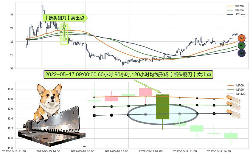形态多维评估: ⚀ 2022-05-17 09:00:00小时显现 60小时-90小时-120小时均线 【断头铡刀】卖出点 看空信号,后市看跌,卖出