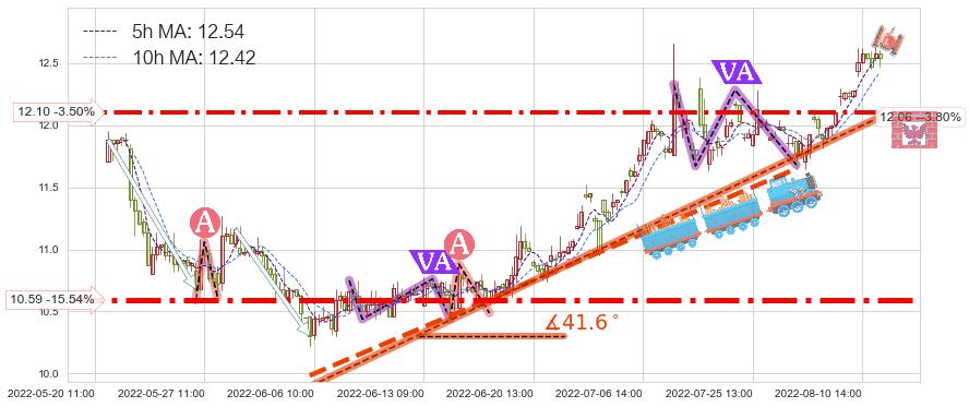 ♞ 5小时均线:12.54,10小时均线:12.42→ 快线>慢线