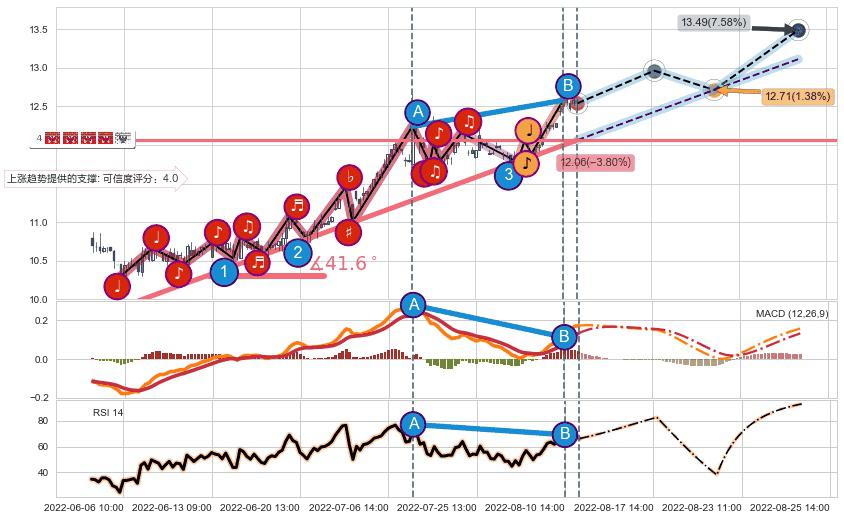 ➣ 预测:2022-08-22 11:00,【试探支撑】稳定目前上涨趋势的前提下,预测价格:12.71