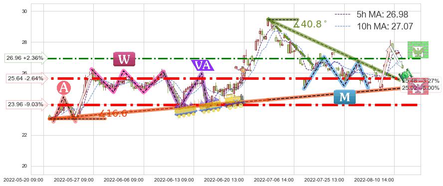 ♘ 阻力价格位26.96,可信任强度59.09%,距离最后交易2022-08-12 14:00形成的收盘价格26.34相差 +2.36%