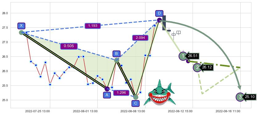 ➣ 已达成看涨【鲨鱼】形态全部的预期目标