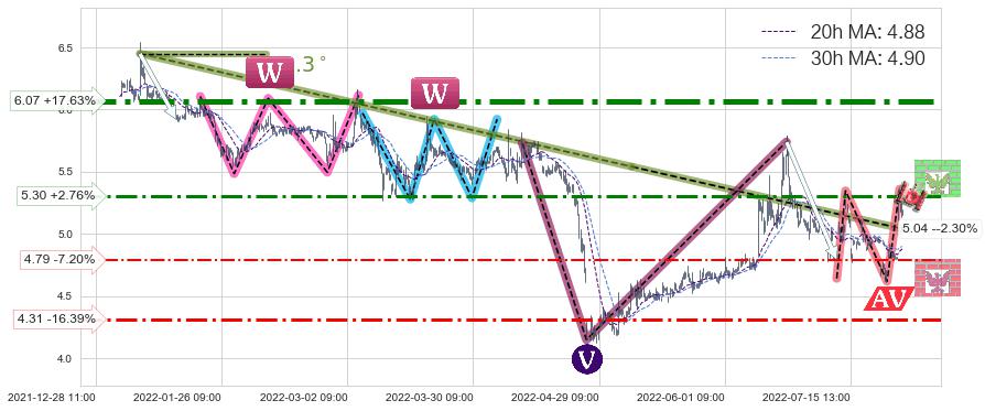 ♞ 20小时均线:4.88,30小时均线:4.90→ 快线<慢线
