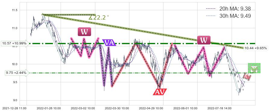 ♞ 20小时均线:9.38,30小时均线:9.49→ 快线<慢线