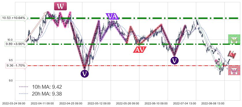 ♘ 支撑价格位9.36,可信任强度52.94%,距离最后交易2022-08-12 14:00形成的收盘价格9.52相差 -1.70%