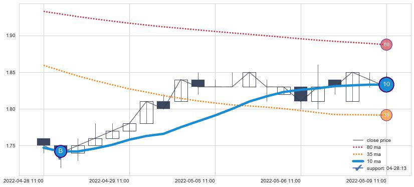 ⚃ 在突破点附近ma走势明显平稳迹象,稍后的走势中ma上翘迹象也出现,信号【可信度中等偏上】