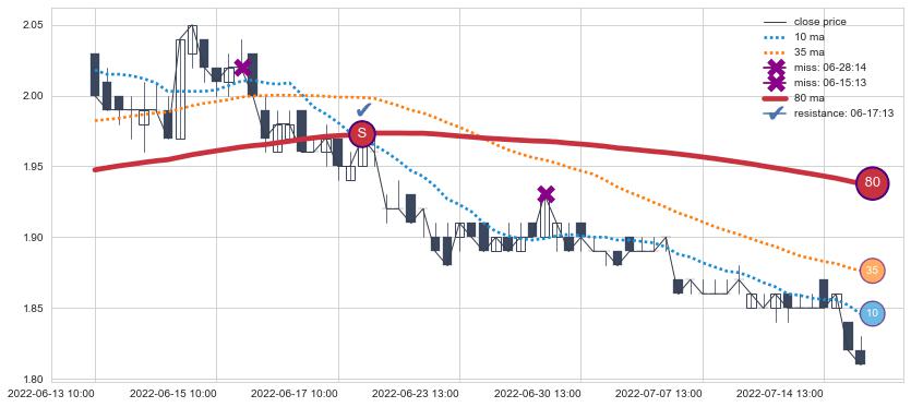 ⚂ 2022-06-15 14:00:00小时突然冒出一根大阴线,一下子下穿三条均线且收盘价收在各条均线之下