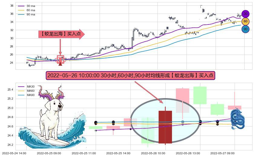 形态多维评估: ⚀ 2022-05-26 10:00:00小时显现 30小时-60小时-90小时均线 【蛟龙出海】买入点 看多信号,后市看涨,买入