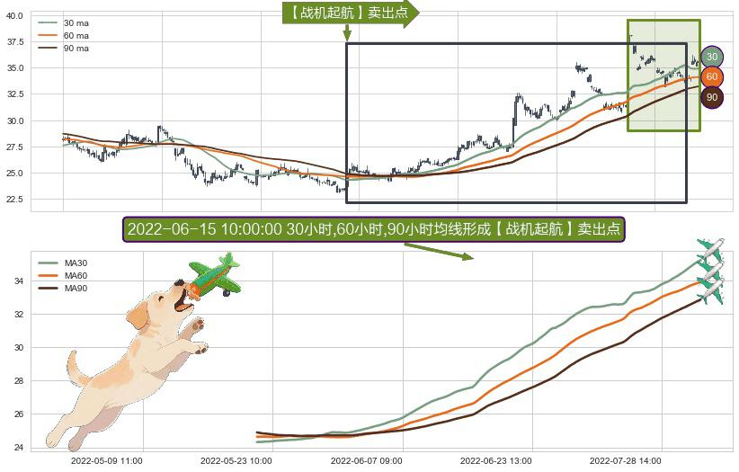 形态多维评估: ⚀ 2022-05-20 09:00:00小时-2022-08-09 13:00:00小时显现 30小时-60小时-90小时均线 【战机起航】卖出点 看空信号,后市看跌,卖出