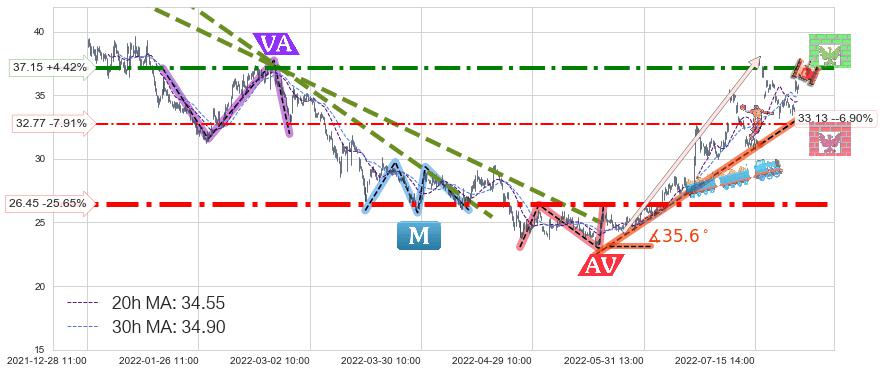 ♞ 20小时均线:34.55,30小时均线:34.90→ 快线<慢线