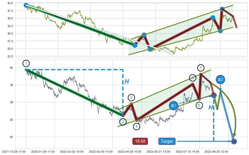 ➣ 最小中继整理跌幅→𝐇: 13.26 (𝐇旗杆的长度:旗杆起点→顶点)