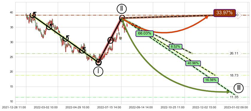 ➣ 大趋势循环浪继续向下概率66.03%