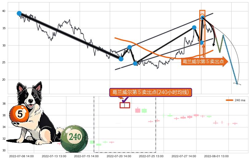 | 7 🅚:葛兰威尔第⑤卖出点 ➕ 🌊:波浪理论下跌5浪延续:猜想C点强阻力小反弹终止,猜想保持下跌5浪方向下行(均值回复后大周期继续趋势跟踪) ☞ 看空信号 ⇥ 【均线】交织【图形】⇥ 综合量化分数: 35 | > |