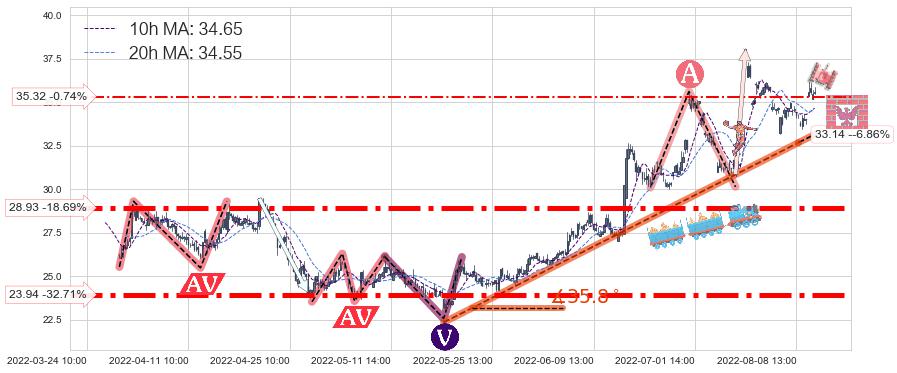 ♞ 10小时均线:34.65,20小时均线:34.55→ 快线>慢线