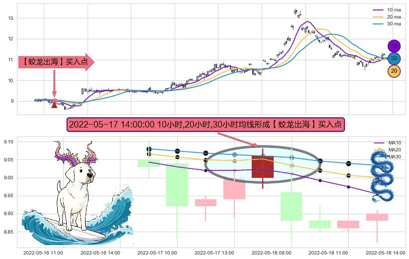 ⚀ 2022-05-17 14:00:00小时显现 10小时-20小时-30小时均线 【蛟龙出海】买入点 看多信号,后市看涨,买入