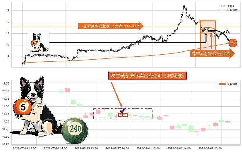 ⚁ 240小时均线 第⑤卖出点 属于 均线服从 信号,属于趋势运行的【常态】期望为上涨趋势的均线引力作用