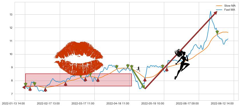01-14 10:00至04-19 14:00 慢线与快线多次接触,存在上下穿越,有缠绕