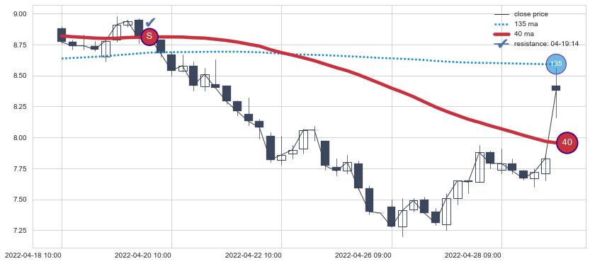 ⚂ 2022-05-17 14:00:00小时突然冒出一根大阳线,一下子顶穿三条均线且收盘价收在各条均线之上