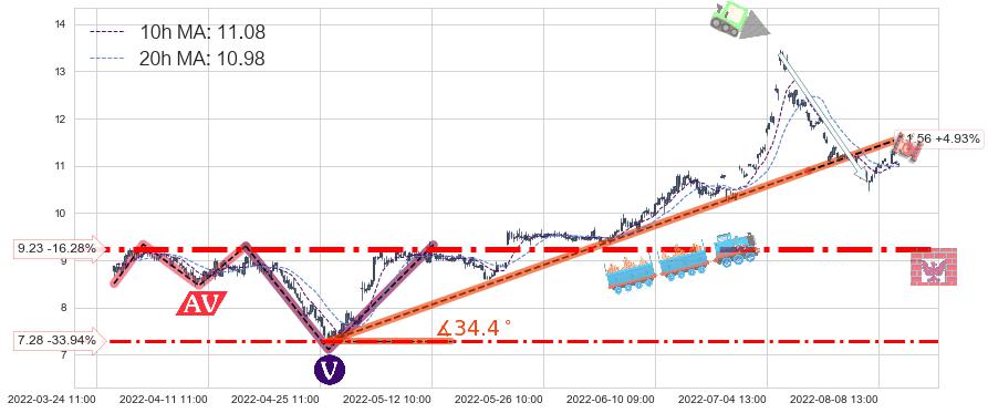 ♞ 10小时均线:11.08,20小时均线:10.98→ 快线>慢线