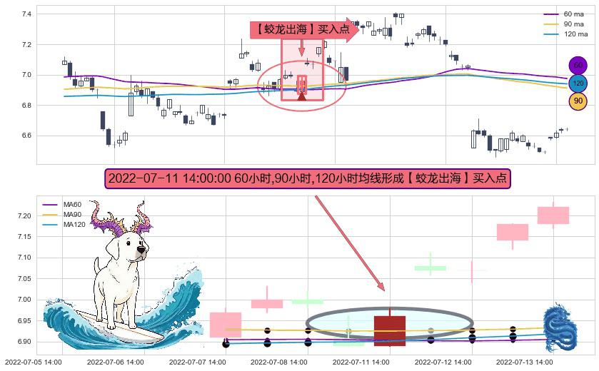 形态多维评估: ⚀ 2022-07-11 14:00:00小时显现 60小时-90小时-120小时均线 【蛟龙出海】买入点 看多信号,后市看涨,买入
