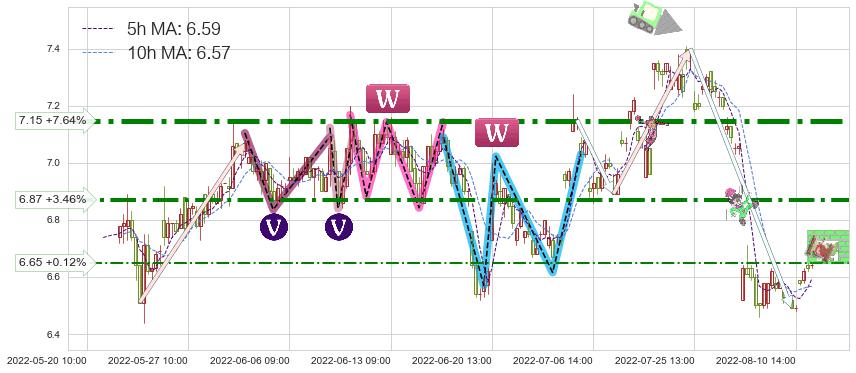 ♘ 阻力价格位6.87,可信任强度81.71%,距离最后交易2022-08-12 14:00形成的收盘价格6.64相差 +3.46%