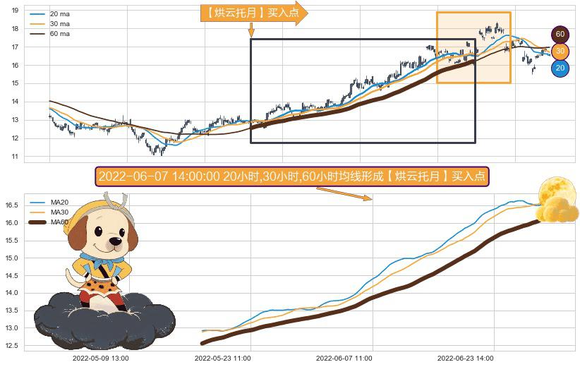 形态多维评估: ⚀ 2022-05-17 11:00:00小时-2022-07-11 13:00:00小时显现 20小时-30小时-60小时均线 【烘云托月】买入点 看多信号,后市看涨,买入