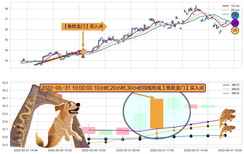 形态多维评估: ⚀ 2022-05-31 10:00:00小时显现 10小时-20小时-30小时均线 【鱼跃龙门】买入点 看多信号,后市看涨,买入