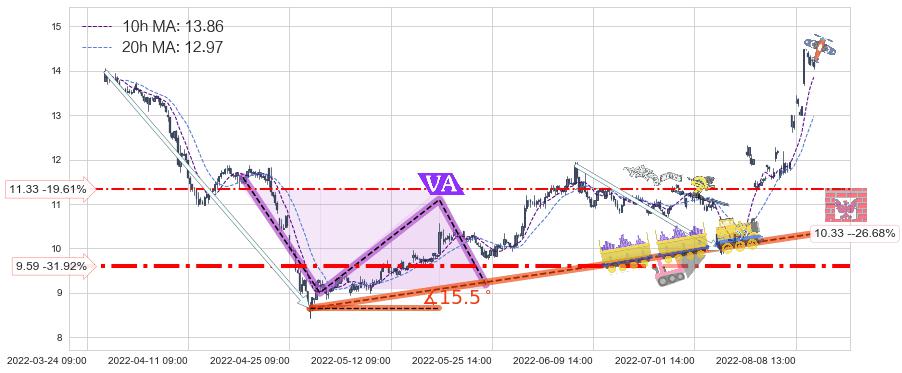 ♞ 10小时均线:13.86,20小时均线:12.97→ 快线>慢线