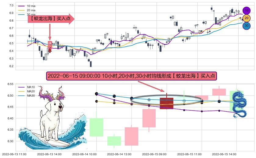 形态多维评估: ⚀ 2022-06-15 09:00:00小时显现 10小时-20小时-30小时均线 【蛟龙出海】买入点 看多信号,后市看涨,买入