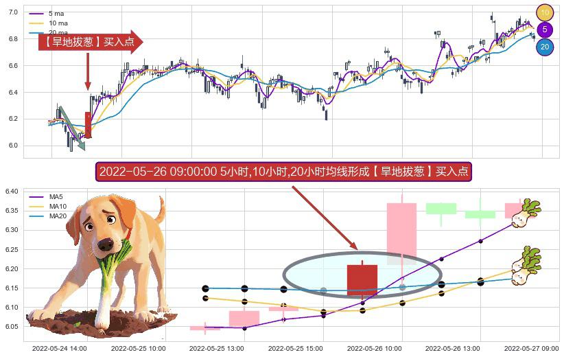 形态多维评估: ⚀ 2022-05-26 09:00:00小时显现 5小时-10小时-20小时均线 【旱地拔葱】买入点 看多信号,后市看涨,买入