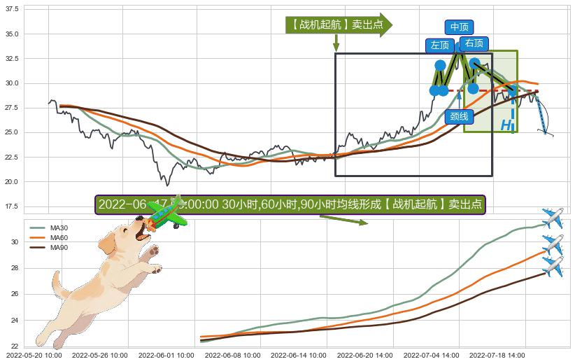 ➣ 2022-05-25 10:00-2022-07-08 14:00上升趋势存在反转[风险],虽然原上升趋势的支撑位(29.17)已破位,但其支撑效果尚存,原上升趋势角度: 35.0˚
