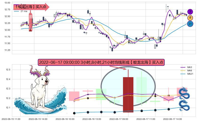 ⚀ 2022-06-17 09:00:00小时显现 3小时-8小时-21小时均线 【蛟龙出海】买入点 看多信号,后市看涨,买入