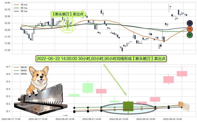 ⚀ 2022-06-22 14:00:00小时显现 30小时-60小时-90小时均线 【断头铡刀】卖出点 看空信号,后市看跌,卖出
