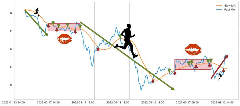 03-07 13:00至05-27 14:00 慢线与快线呈空头排列, 慢线与快线接触少,无缠绕