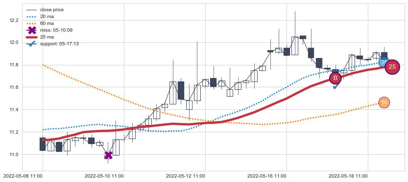 ⚂ 2022-06-17 09:00:00小时突然冒出一根大阳线,一下子顶穿三条均线且收盘价收在各条均线之上