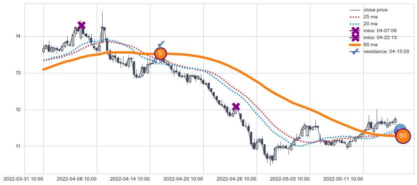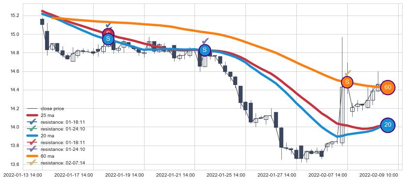 ⚂ 2022-06-22 14:00:00小时突然冒出一根大阴线,一下子下穿三条均线且收盘价收在各条均线之下