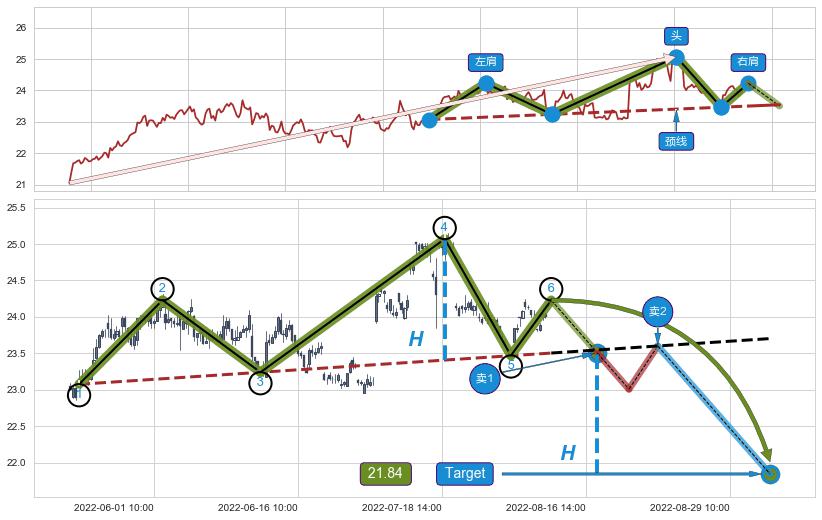 ➣ 最小反转跌幅→𝐇: 1.6627 (头部与颈线垂直距离)