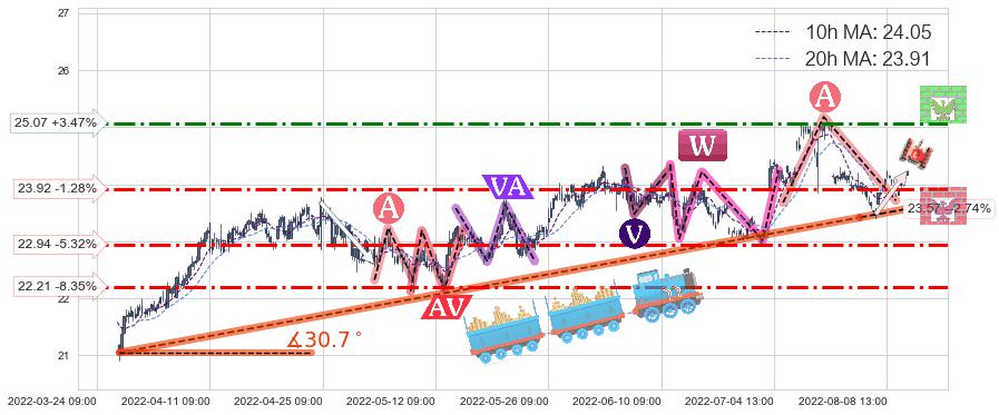 ➢ 预测:2022-08-22 09:00,【小幅回撤】稳定目前上涨趋势的前提下,预测价格:23.79
