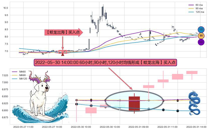 ⚀ 2022-05-30 14:00:00小时显现 60小时-90小时-120小时均线 【蛟龙出海】买入点 看多信号,后市看涨,买入