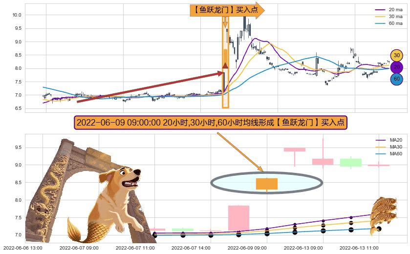 ⚀ 2022-06-09 09:00:00小时显现 20小时-30小时-60小时均线 【鱼跃龙门】买入点 看多信号,后市看涨,买入