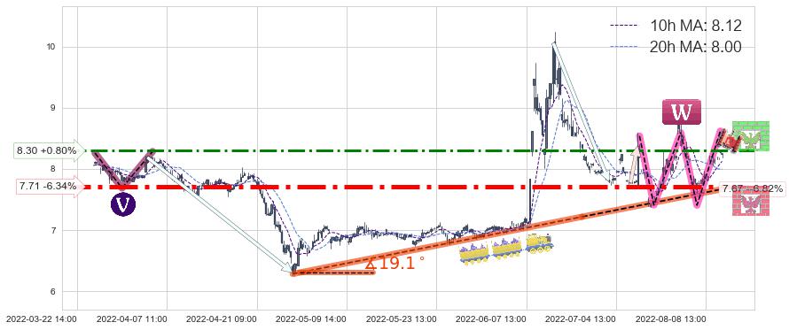 ♞ 10小时均线:8.12,20小时均线:8.00→ 快线>慢线