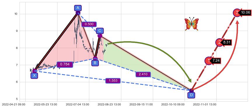 ➣ 未完成【蝴蝶】形态起点X: 04-28:13, 已到达C点: 07-27:13, 预测最终D点: 10-13:12, 共480交易小时