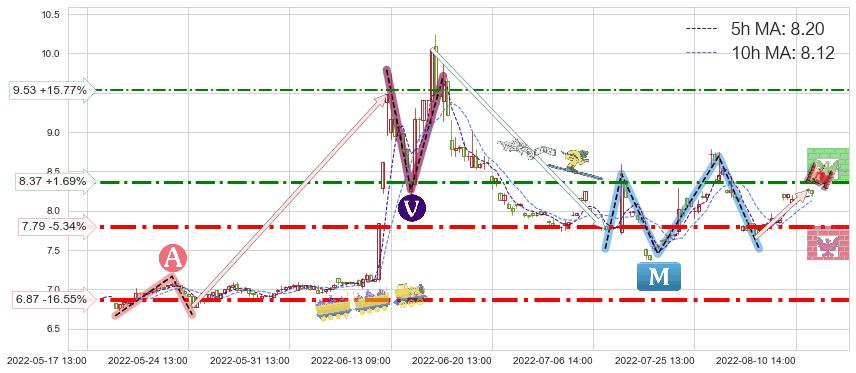♞ 5小时均线:8.20,10小时均线:8.12→ 快线>慢线