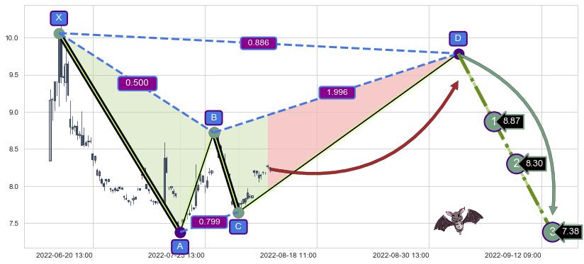 ➣ 未完成【蝙蝠】形态起点X: 06-15:09, 已到达C点: 08-03:14, 预测最终D点: 09-01:14, 共178交易小时